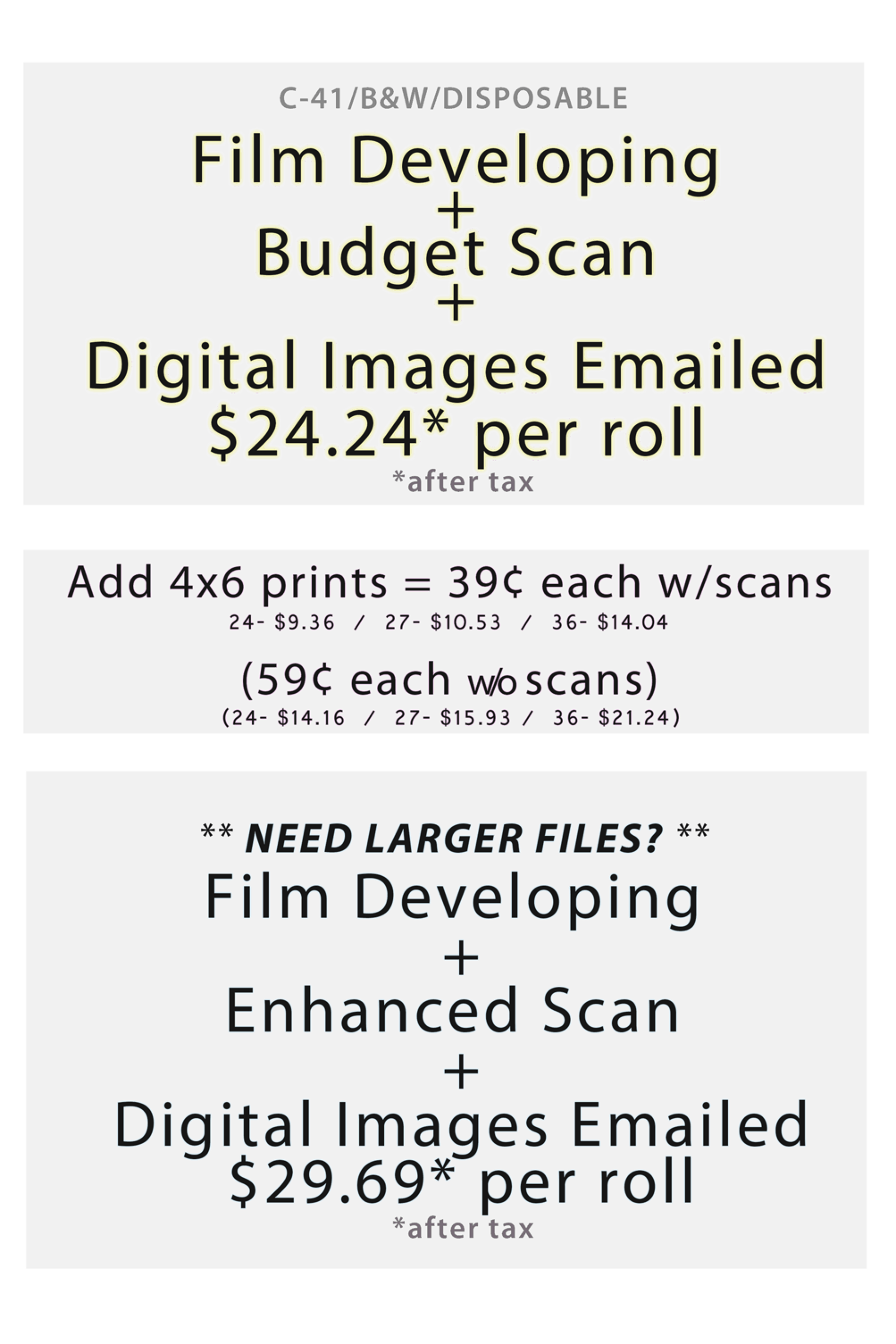 We also offer image file transfers via WeTransfer for only $1.00 extra per roll.